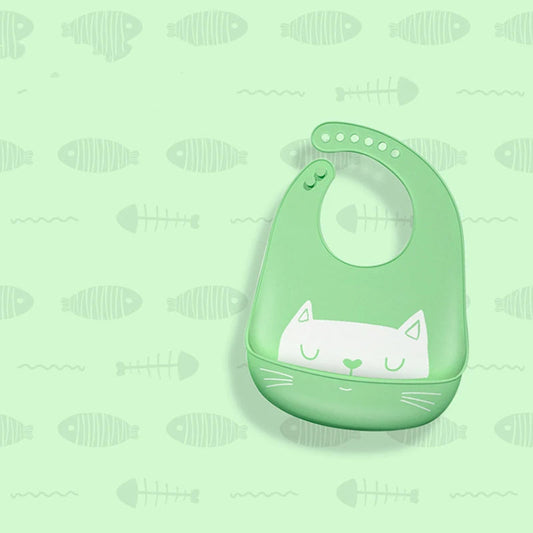 Bavoir en silicone imperméable à motif de chat pour bébé