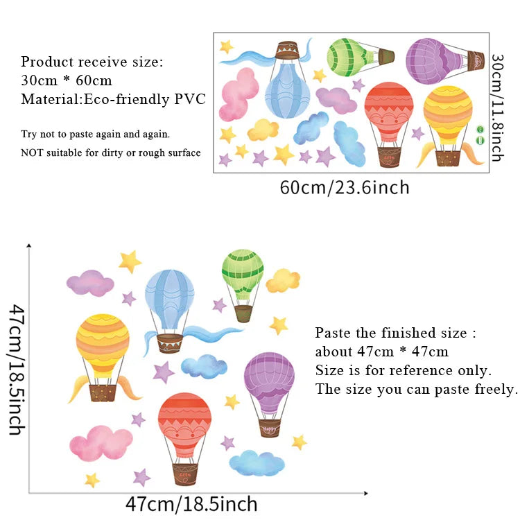 Cartoon Painted Hot Air Balloon Wall Sticker