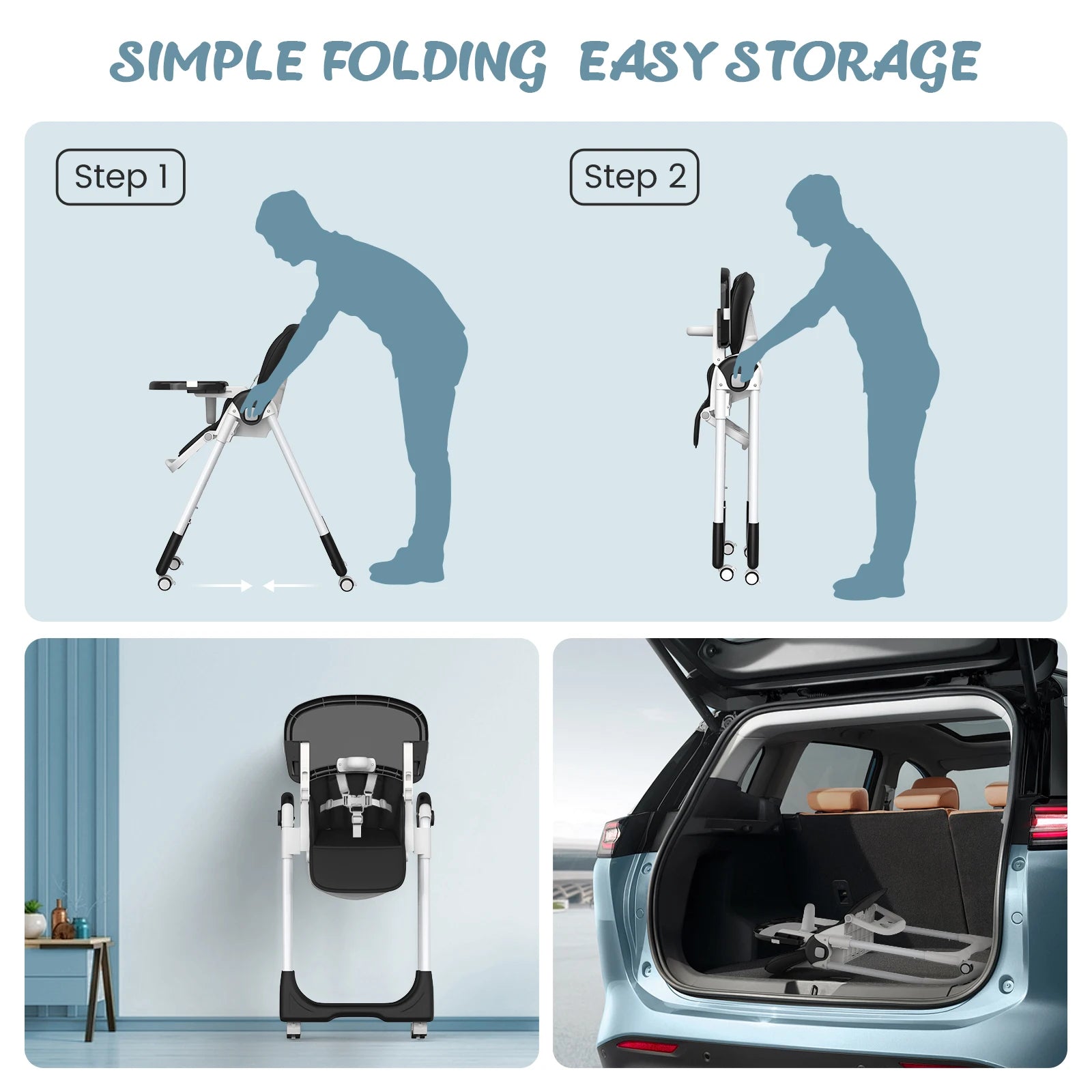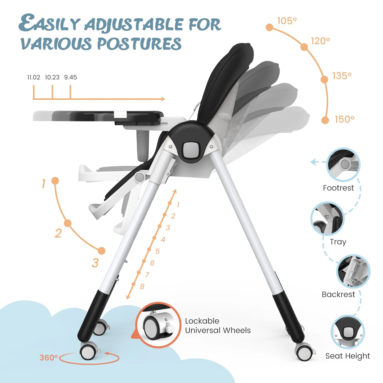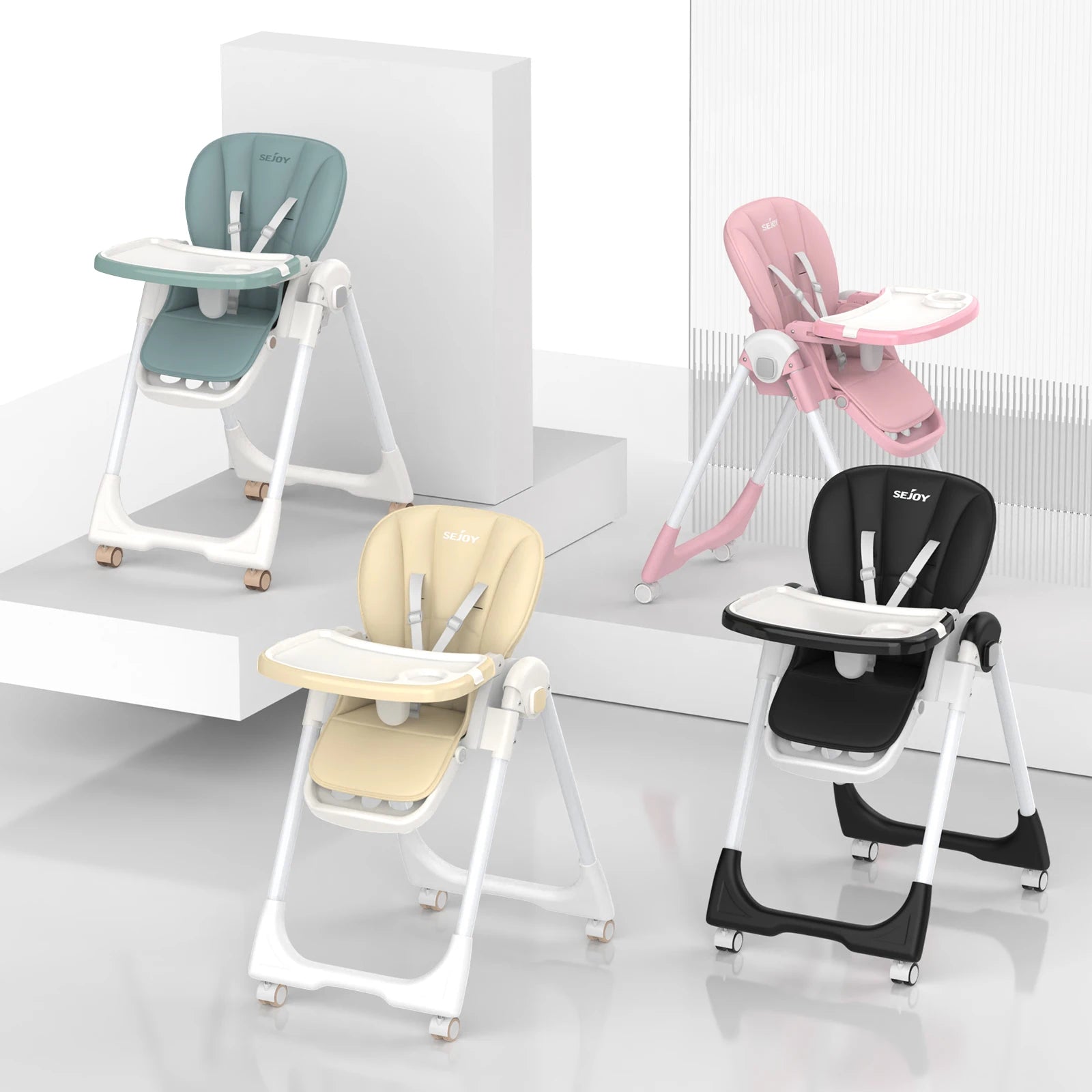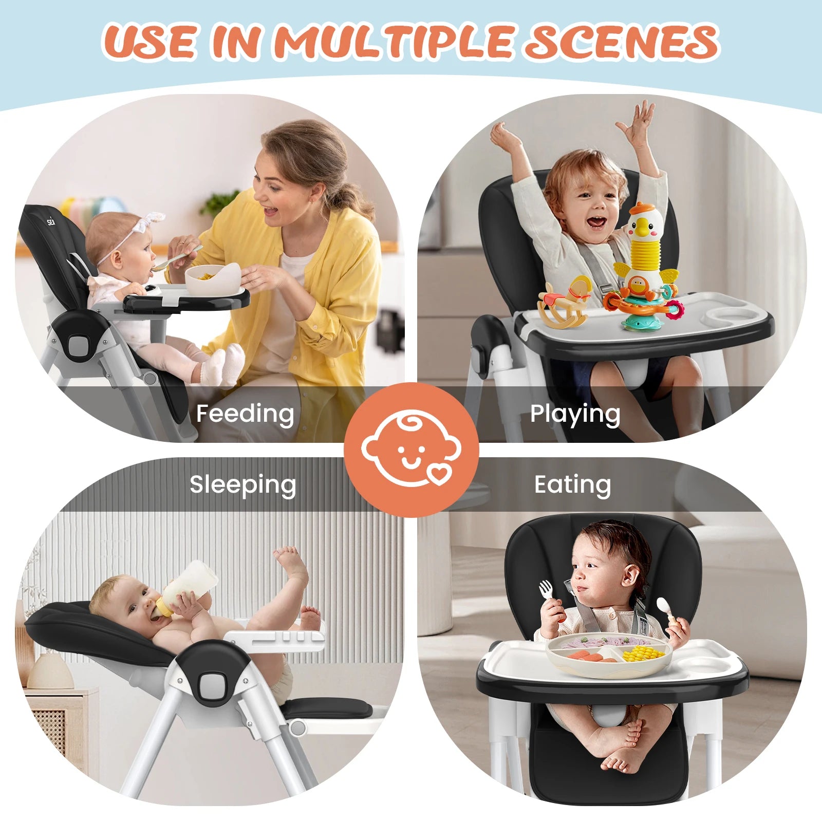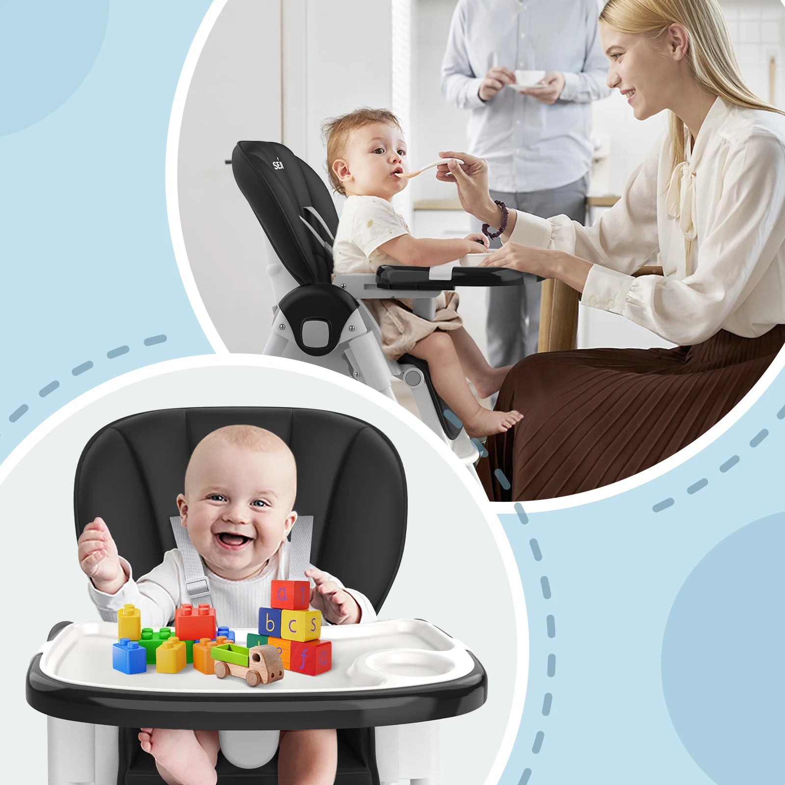 • 3-Tier Adjustable Tray System - Detachable dual-layer tray with 3-depth settings for food separation & stage adaptation (6M-3Y)
