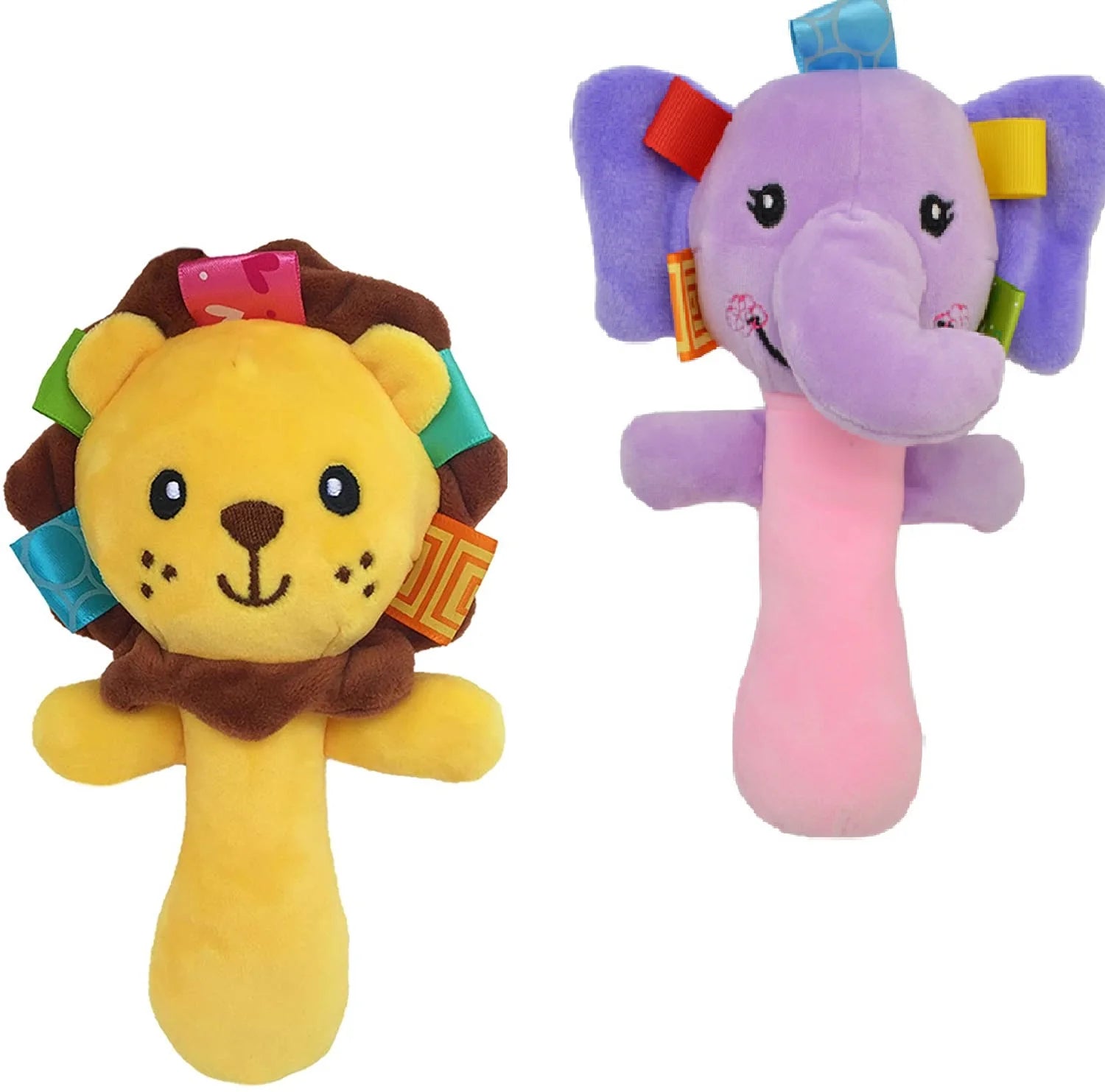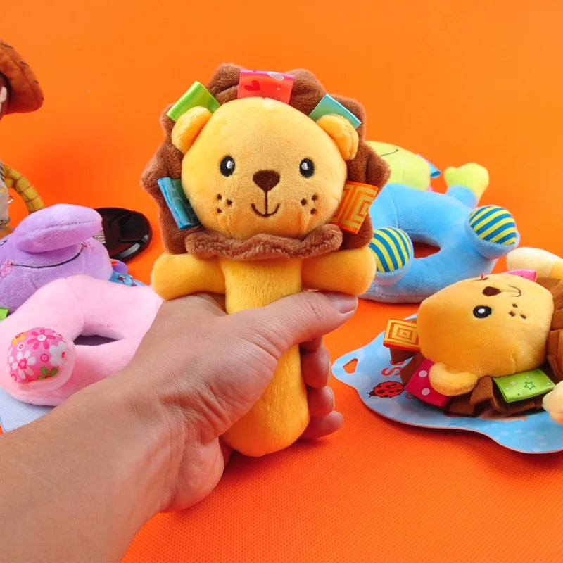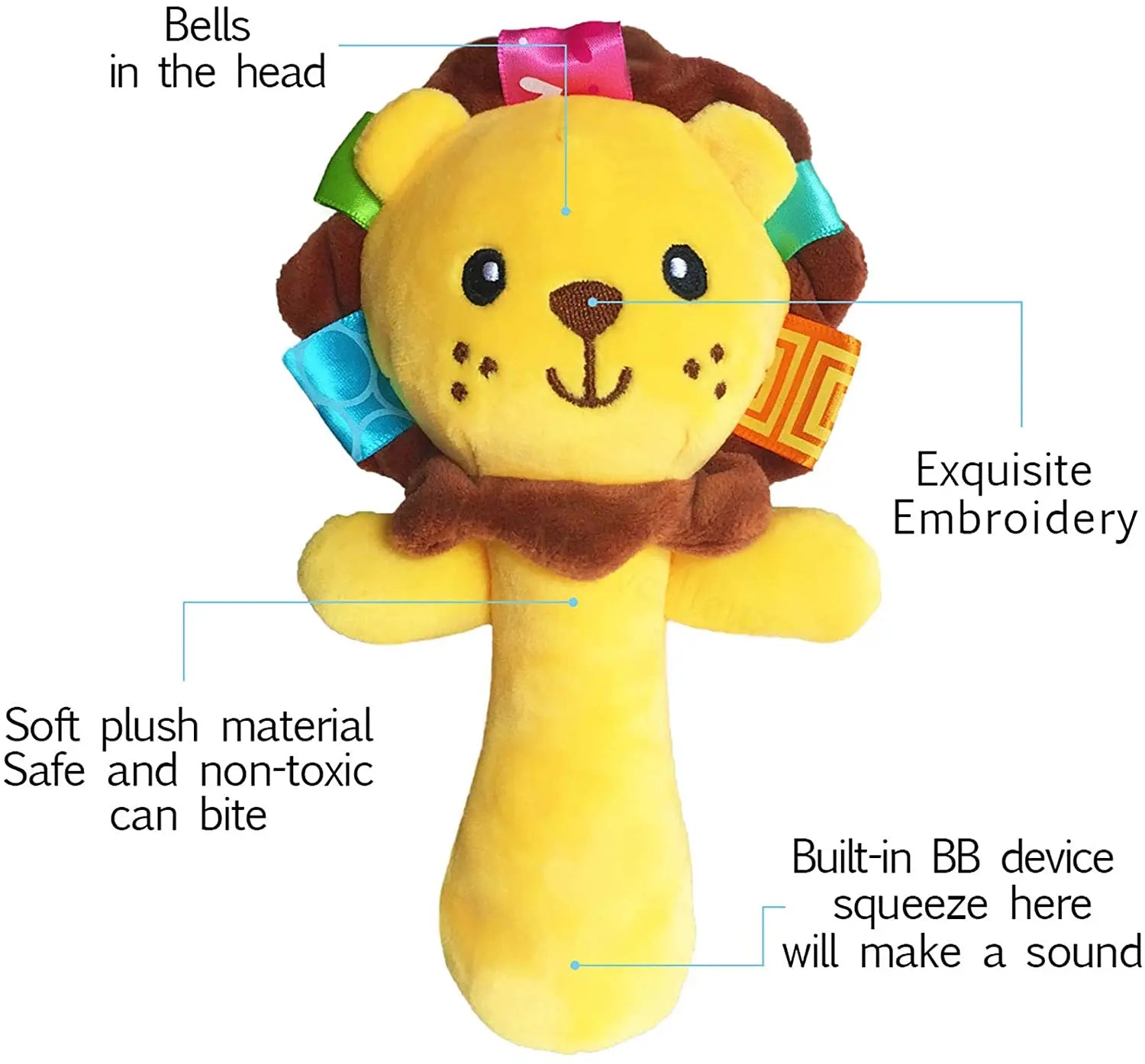 Cartoon Stuffed Animal rattles suitable for 3 months up baby. high contrast colors and patterns and smiling animal faces visually stimulate your baby's vision and focus, encourage baby to touch and explore.,This plush hand toys makes a great present for any expectant mother or newborn baby. Give it as a special gift for baby showers, birthday parties or Christmas gatherings.