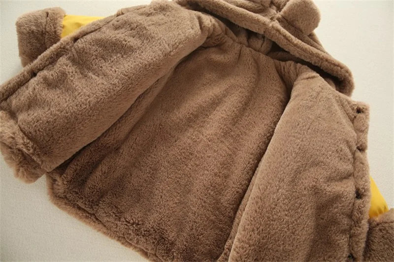 Manteau épais chaud en velours à capuche motif oreille d’ours
