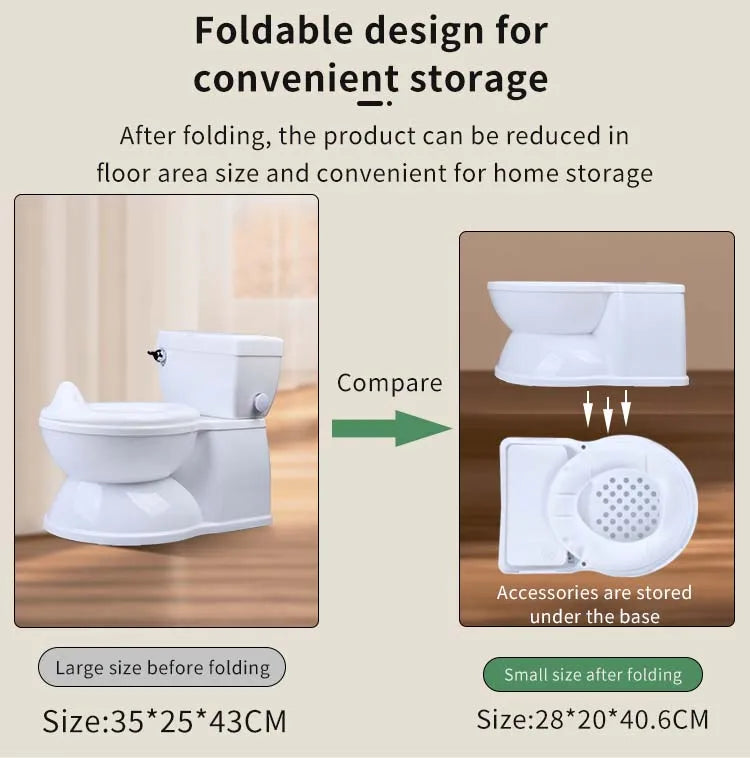 Parents no longer need to urge their babies to the toilet, realistic flushing sounds is the best magic to attract babies to potty training toilet.