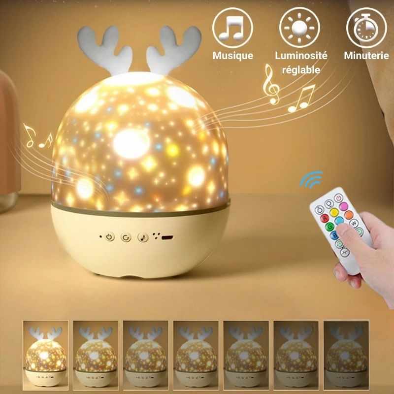 Apportez magie et émerveillement à la chambre de votre enfant avec ce projecteur de nuit en ciel étoilé. Grâce à sa batterie rechargeable intégrée et son câble USB inclus, il offre une projection lumineuse fascinante qui transforme murs et plafonds en un univers féerique. Avec sa boîte à musique intégrée proposant 8 chansons apaisantes et sa télécommande pratique, il crée une atmosphère douce et rassurante pour aider les tout-petits à s’endormir paisiblement.
