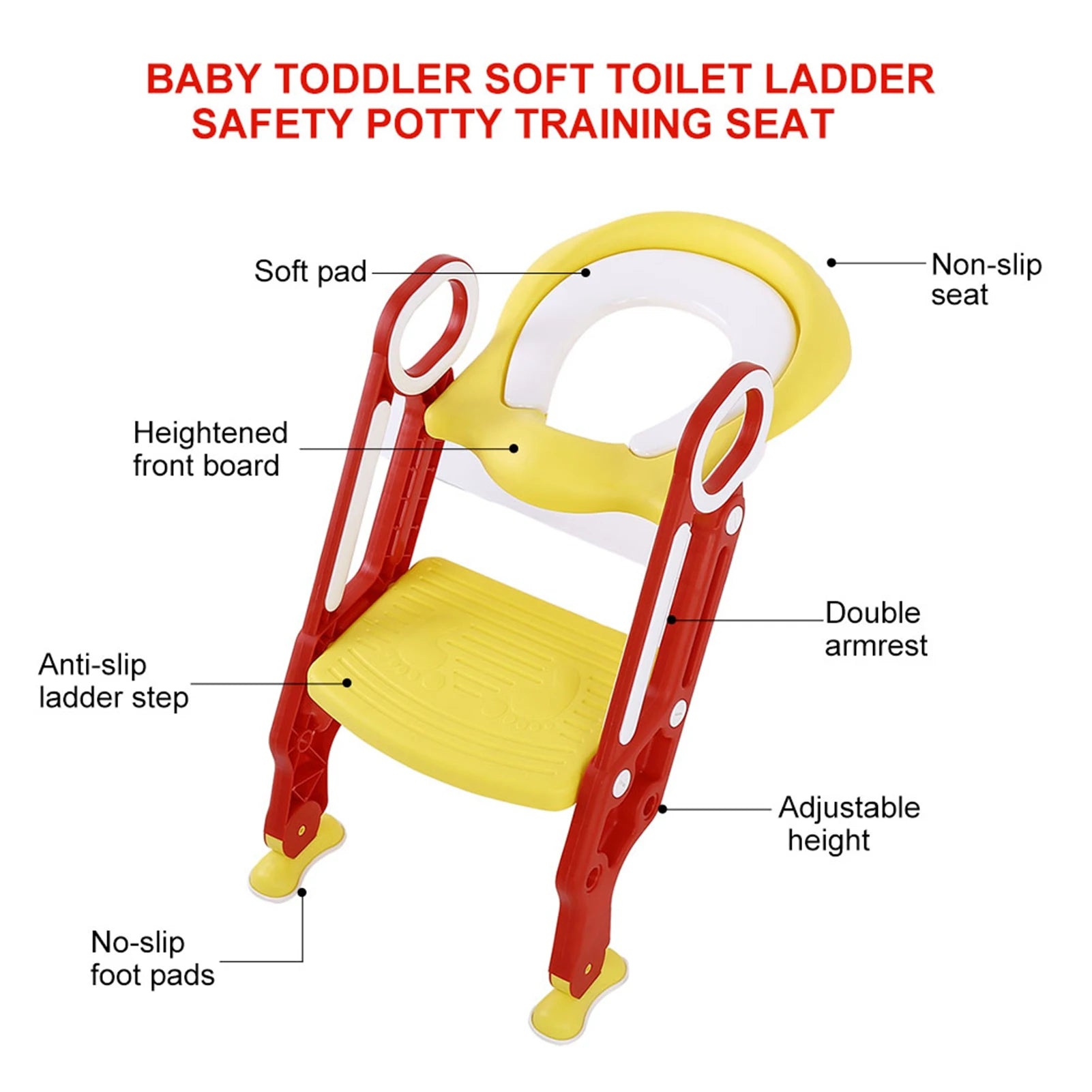 Baby Toddler Soft Toilet Chair Ladder Adjustable Safety Potty Training Seat (Red Yellow)