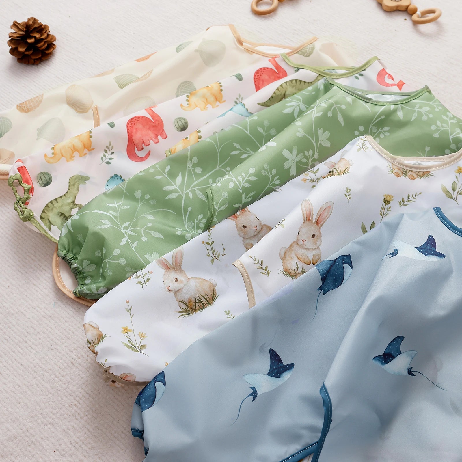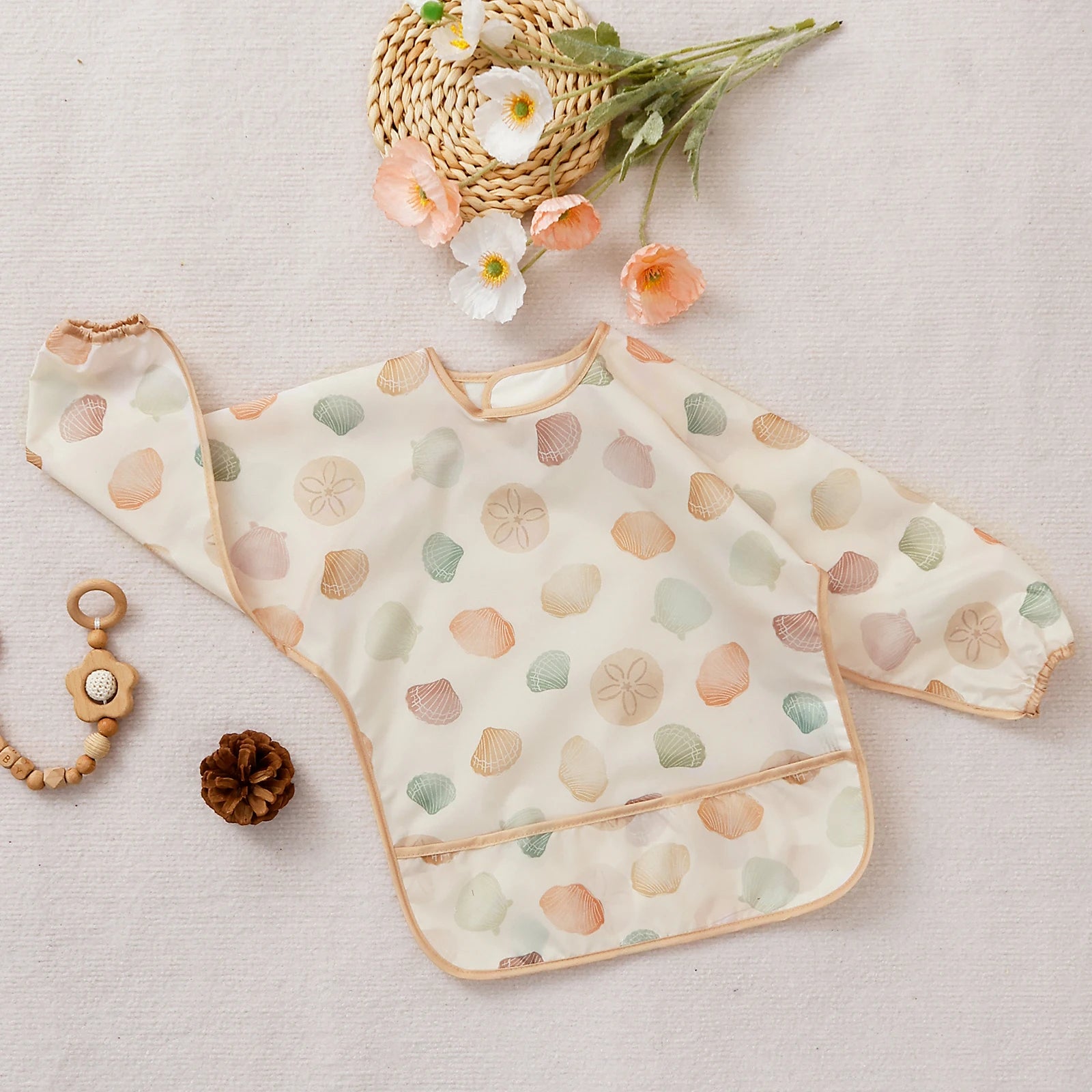 Ce tablier imperméable pour bébé protège efficacement contre les éclaboussures et les taches. Sa coupe à manches longues couvre parfaitement le haut du corps, garantissant une protection complète durant chaque repas.