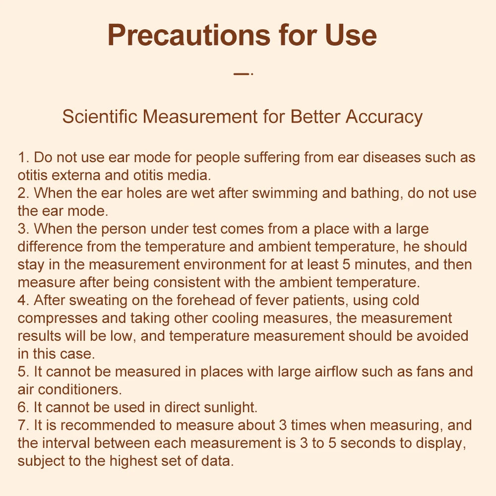 4. After sweating on the forehead of fever patients, using cold compresses and taking other cooling measures, the measurement results will be low, and temperature measurement should be avoided in this case.