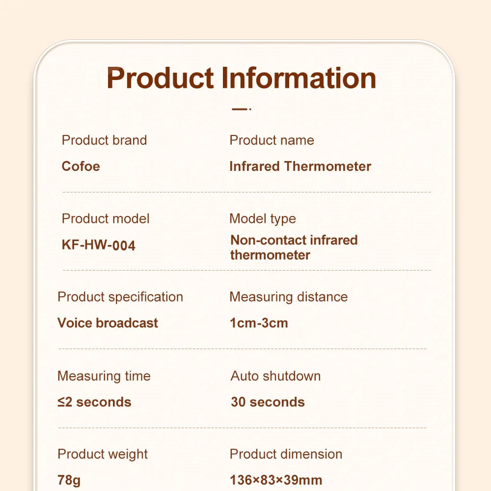 Cofoe Digital Infrared Thermometer Forehead Ear Non-Contact Portable Termometro