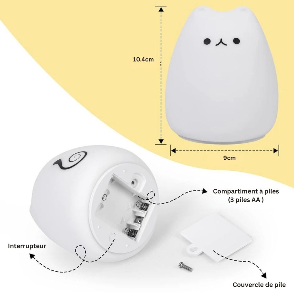 Découvrez une veilleuse chat en silicone adorable et pratique, idéale pour rassurer votre enfant tout au long de la nuit. Son design mignon et ergonomique s’intègre parfaitement dans une chambre de bébé, de tout-petit ou d’enfant, tout en offrant un éclairage doux et apaisant pour faciliter l’endormissement et instaurer une atmosphère sécurisante. Sa taille compacte et son matériau écologique en font également un cadeau parfait pour les anniversaires ou les fêtes.
