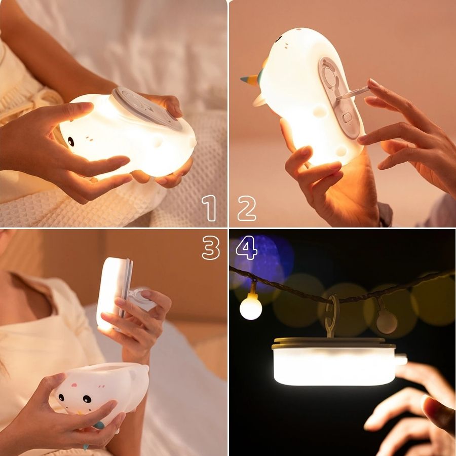 Cette veilleuse propose plusieurs couleurs pour personnaliser l’éclairage selon l’ambiance. Il suffit de tapoter doucement la lampe ou d’utiliser la télécommande fournie pour changer la couleur ou ajuster la luminosité. Les parents apprécient cette fonction simple et intuitive pour créer un environnement calme et sécurisé sans déranger le sommeil de leur bébé.