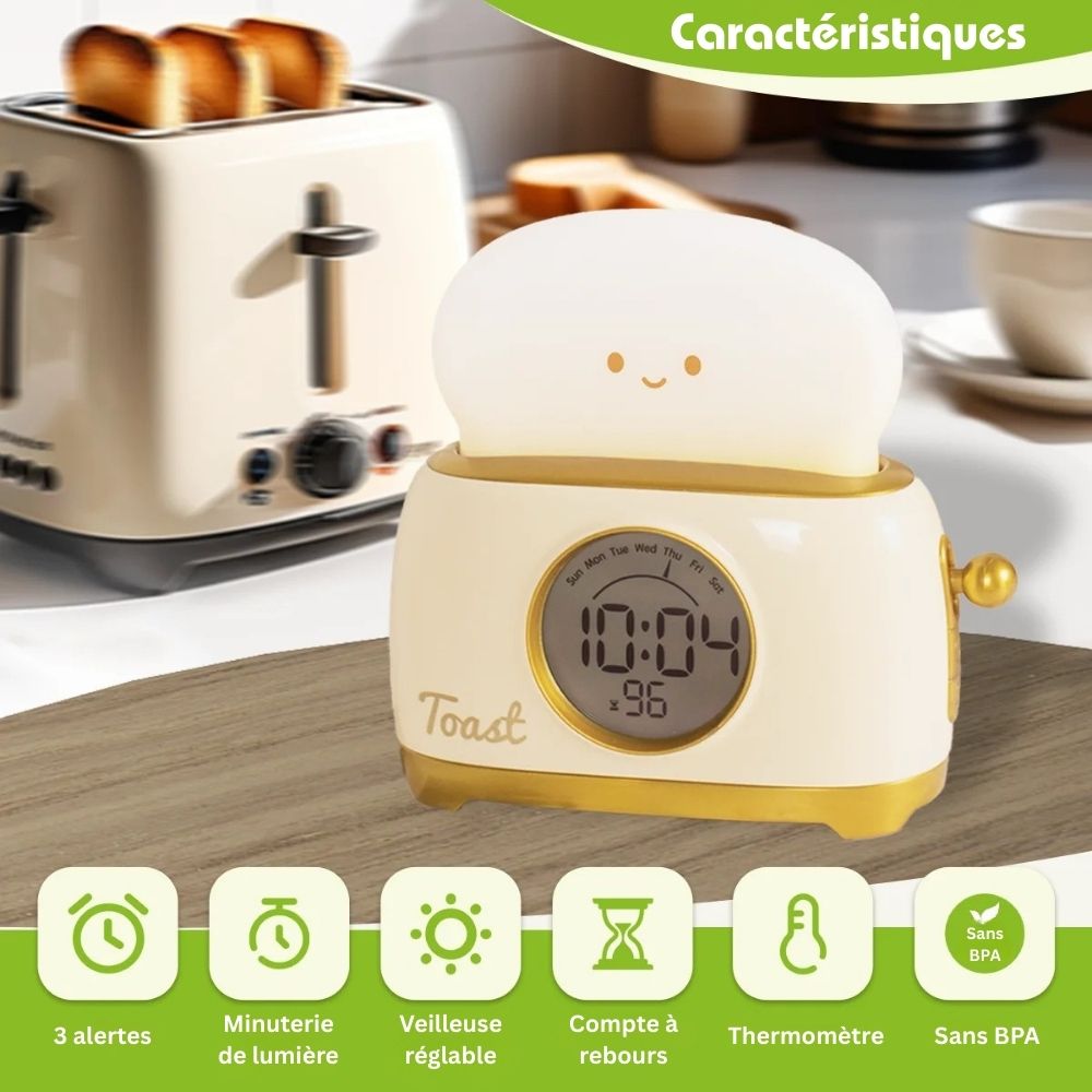 Découvrez la veilleuse grille-pain avec horloge numérique et alarme, un accessoire adorable et fonctionnel qui apporte douceur et praticité à la chambre de votre bébé. Sa lumière douce et réglable apaise les tout-petits pendant la nuit, tout en servant de réveil pratique et de décoration mignonne qui séduit enfants et parents. Parfaite pour rassurer bébé et simplifier vos routines nocturnes et matinales.